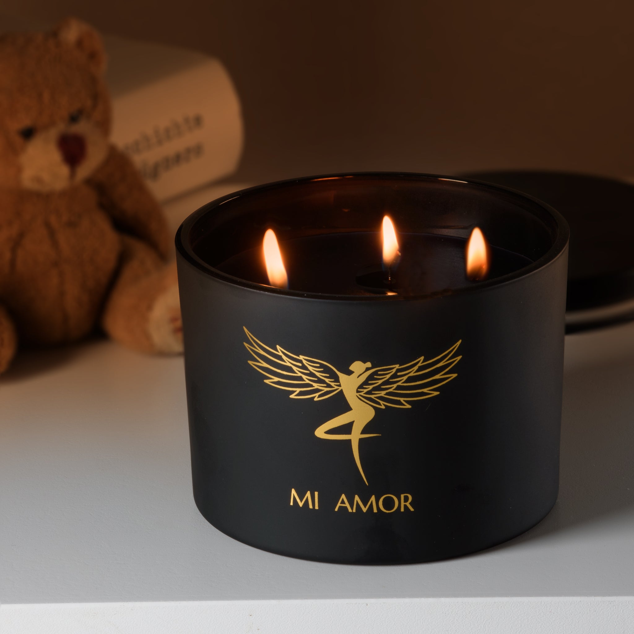 - Der 350gr. mattschwarze Wachs mit drei aus Baumwolle- geflochtenen Dochten hat eine Brenndauer zwischen 42 und 48h zu dem gibt die Kombination eine angenehme Lichtquelle.